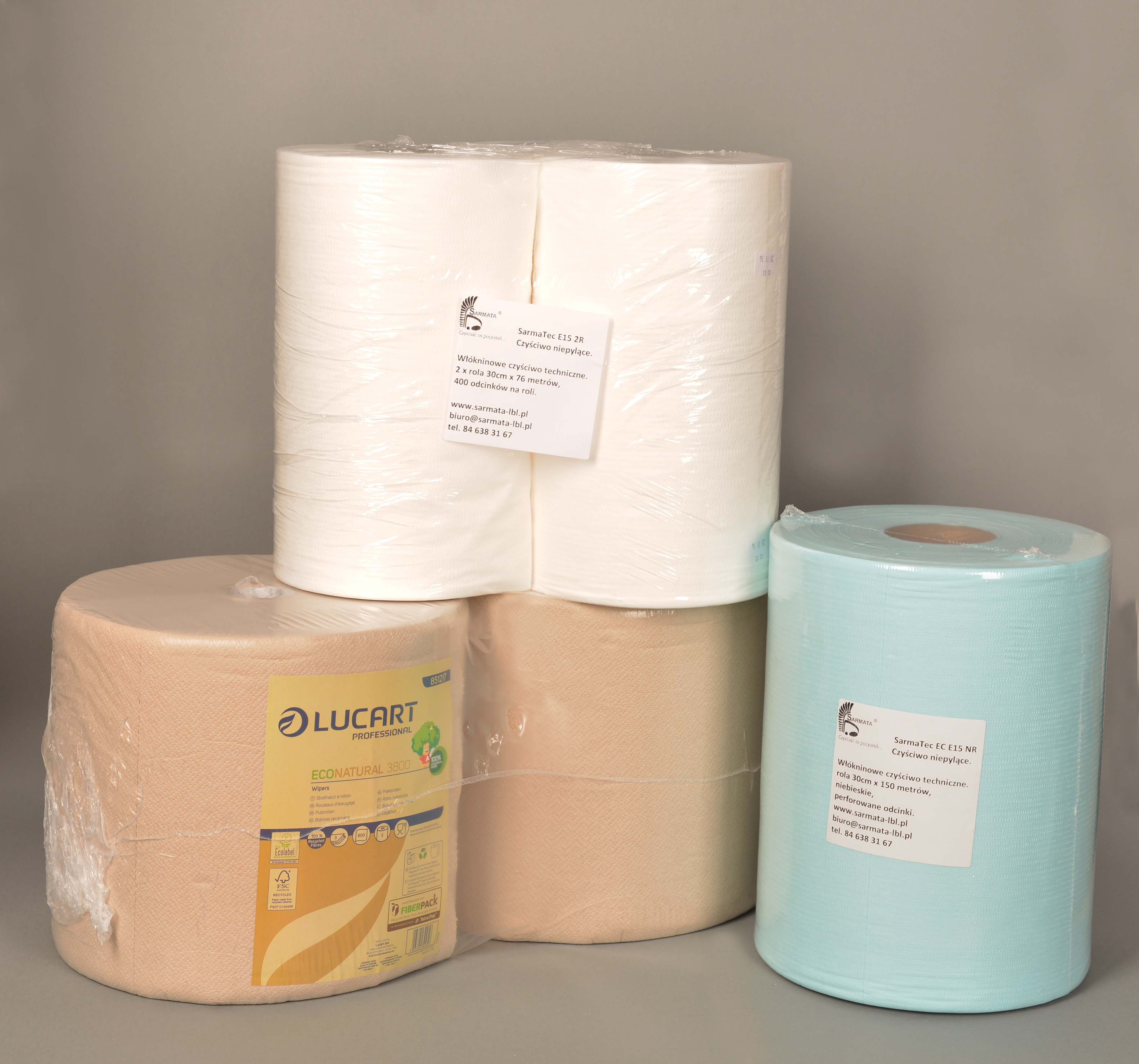 - toaletný papier v štandardných a veľkých kotúčoch a listoch,